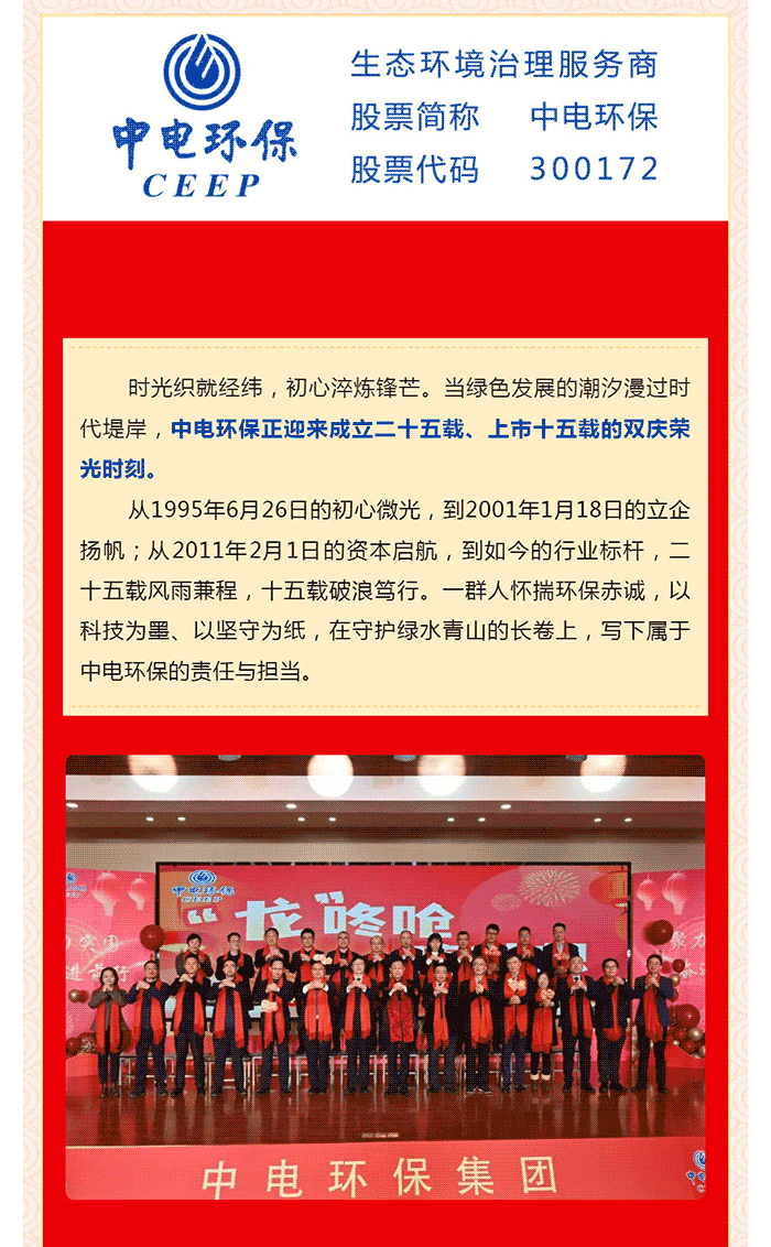 【中電環(huán)保1.18-2.1雙慶】創(chuàng)立25載,篤行守初心;上市15載,奮楫啟新程